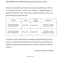 Tendo em vista a melhoria contínua dos seus processos de fabricação, da linha de produtos Permution®, assim como, atender as Regulamentações, a empresa formaliza por meio deste, que os seguintes produtos, terão a sua descontinuação em janeiro de 2024.